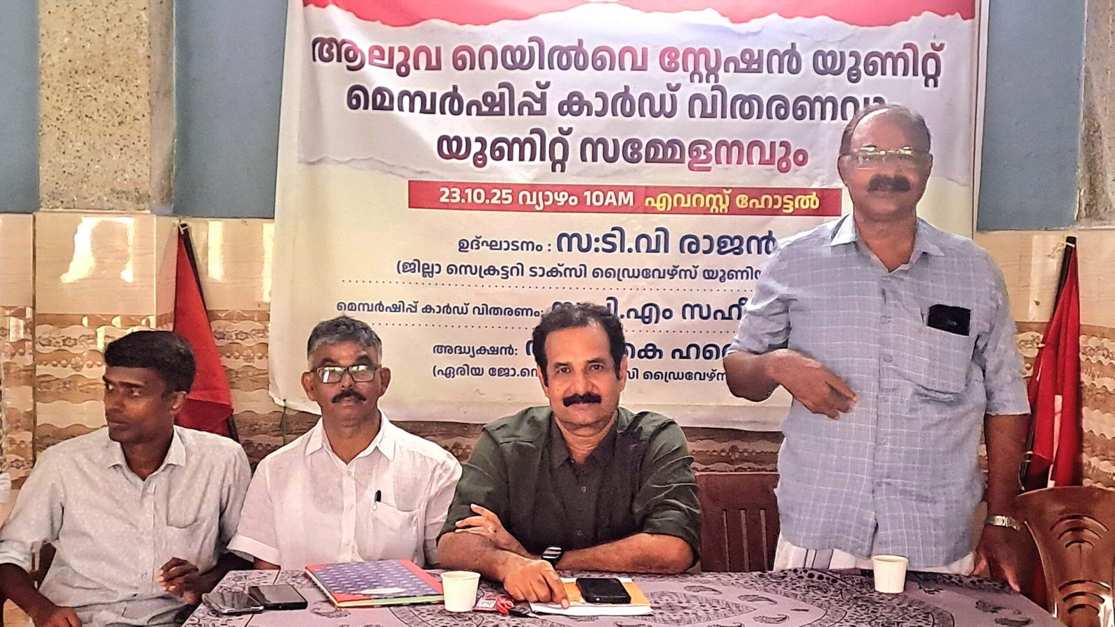 ആലുവ : എറണാകുളം ജില്ലാ ടാക്സി ഡൈവേഴ്സ് യൂണിയൻ (സി.ഐ.ടി.യു ] ആലുവ റെയിൽവേ സ്റ്റേഷൻ യൂണിറ്റ് വാർഷിക സമ്മേളനവും, മെമ്പർഷിപ്പ് കാർഡ് വിതരണവും നടന്നു.യൂണിയൻ ജില്ലാ ജനറൽ സെക്രട്ടറി ടി വി രാജൻ സമ്മേളനം ഉദ്ഘാടനം ചെയ്തു.മെബർഷിപ്പ് കാർഡ് വിതരണം സി.ഐ.ടിയു ആലുവ ഏരിയാ സെക്രട്ടറി പി.എം സഹീർ നിർവ്വഹിച്ചു.കെ.കെ ഹസൈനാർ അദ്ധ്യക്ഷത വഹിച്ചു. കാജാ മൂസ എം.എസ് സുനിൽ തുടങ്ങിയവർ സംസാരിച്ചു.