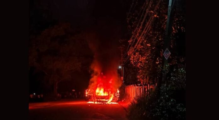 ആലുവ ഏലൂര് എന്നിവിടങ്ങളില് നിന്ന് എത്തിയ അഗ്നിശമനസേനയും നാട്ടുകാരും ചേര്ന്നാണ് തീ അണച്ചത്. ആളപായമില്ലെങ്കിലും കാര് പൂര്ണമായും കത്തി നശിച്ചു.