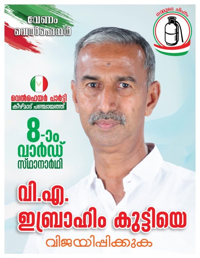 കീഴ്മാട്: സംരംഭകനായും സാമൂഹിക പ്രവര്ത്തകനായും ജനങ്ങളുടെ ഇടയില് വര്ഷങ്ങളായി പ്രവര്ത്തിച്ചു വരുന്ന വ്യക്തിയാണ് വി എ ഇബ്രാഹിംകുട്ടി. കീഴ്മാട് ഗ്രാമപഞ്ചായത്തിലെ എട്ടാം വാര്ഡിലെ ഓരോരുത്തര്ക്കും ഇബ്രാഹിംകുട്ടിയെന്ന വ്യക്തിയെ അറിയാമെന്നതും തെരഞ്ഞെടുപ്പിന് ഗുണം ചെയ്യുന്നുണ്ട്. വെല്ഫെയര് പാര്ട്ടി സ്ഥാനാര്ത്ഥിയായാണ് കീഴ്മാട് എട്ടാം വാര്ഡില് നിന്ന് വി എ ഇബ്രാഹിംകുട്ടി ജനവിധി തേടുന്നത്.